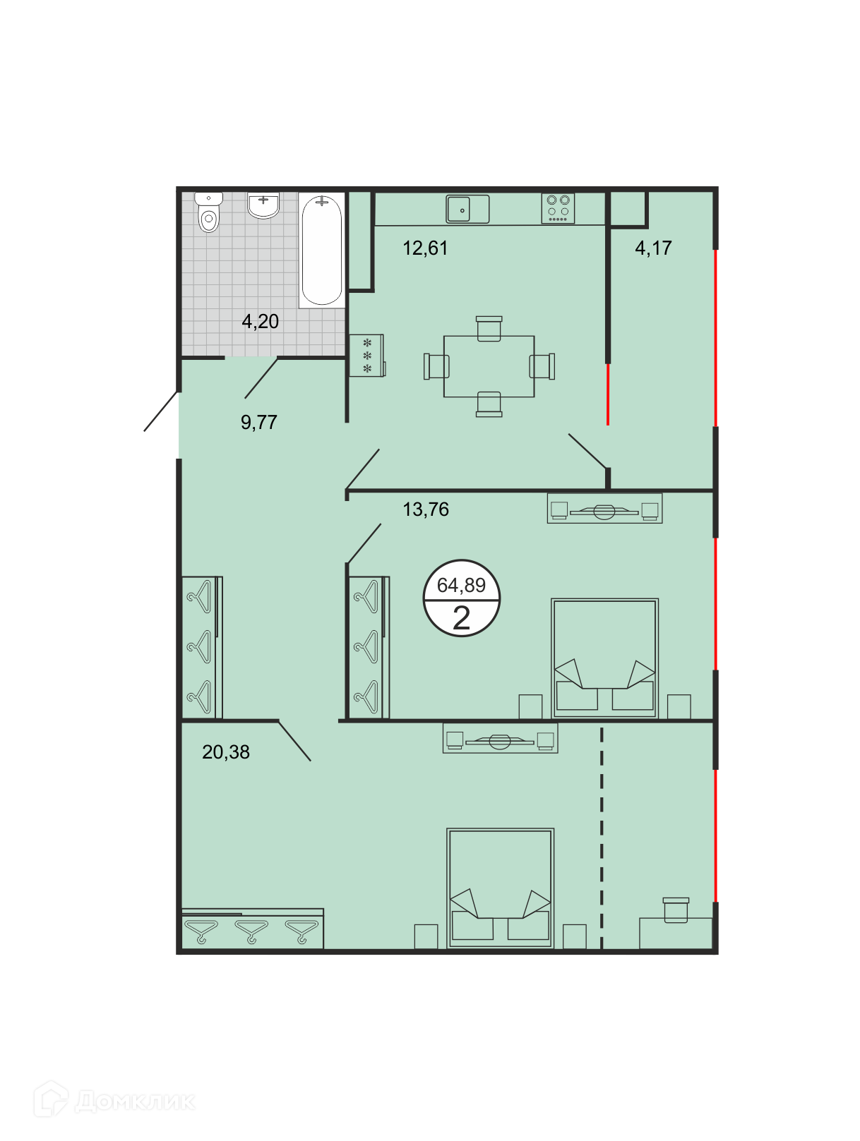 - Общая площадь: 64.81 м²