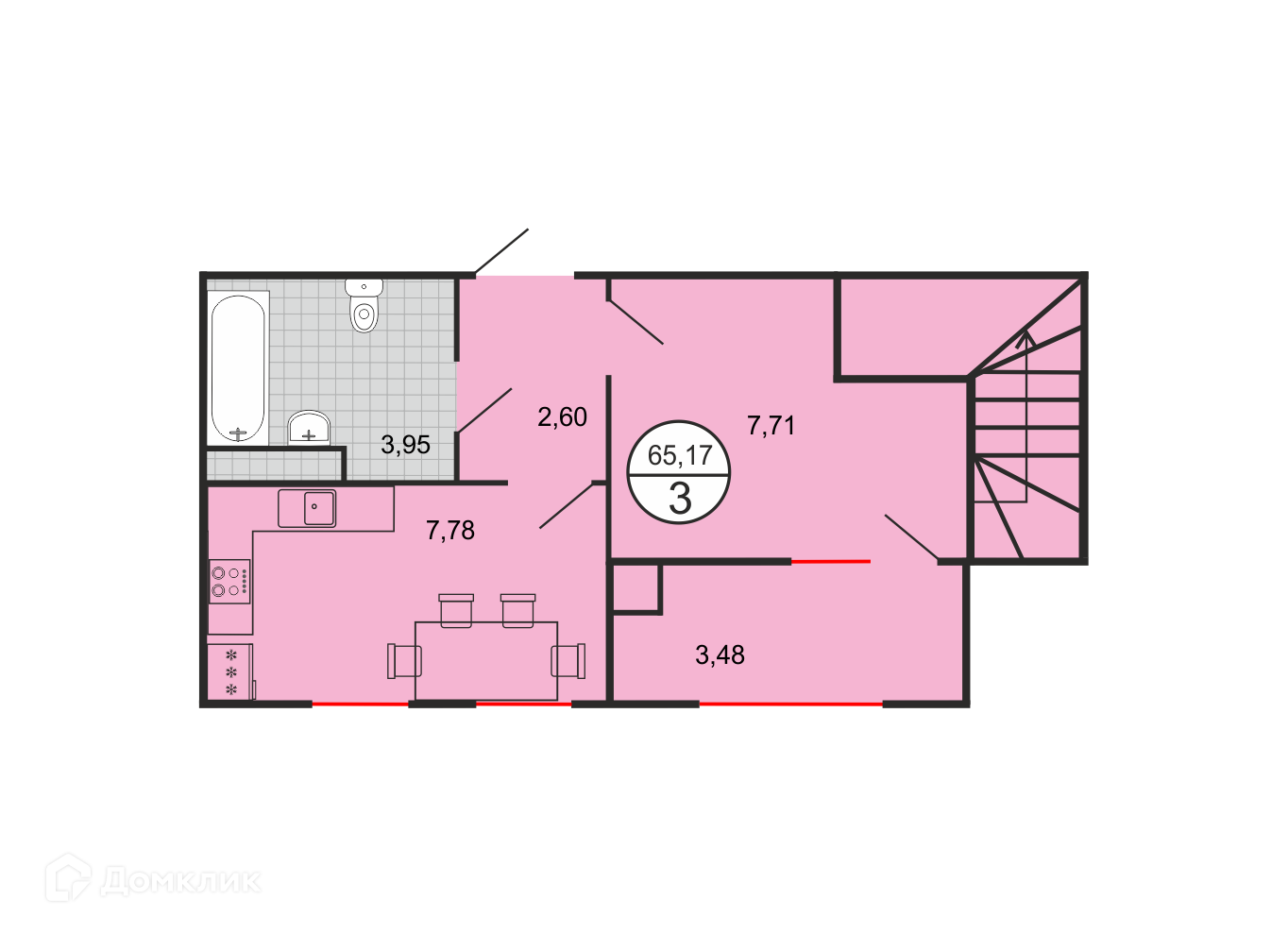 - Общая площадь: 65.17 м²