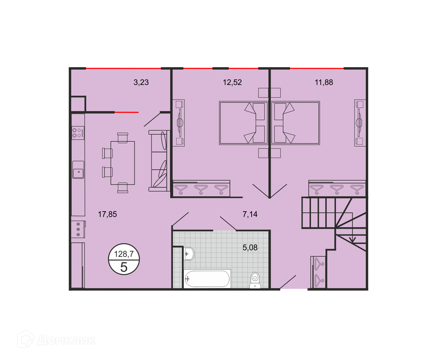 Квартира расположена на 5-м этаже 7-этажного дома.
