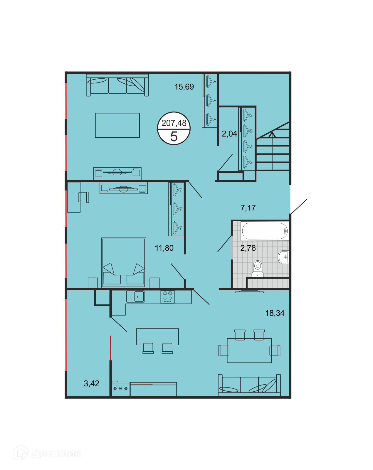 Квартира расположена на 5-м этаже 7-этажного дома.