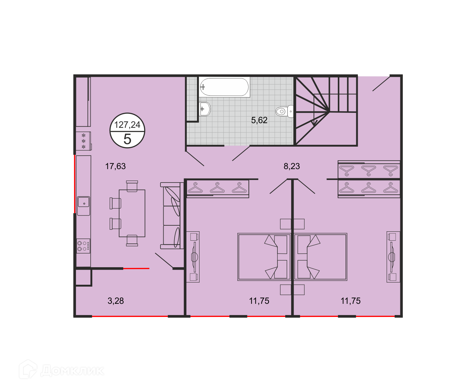 Квартира расположена на 5-м этаже 7-этажного дома.