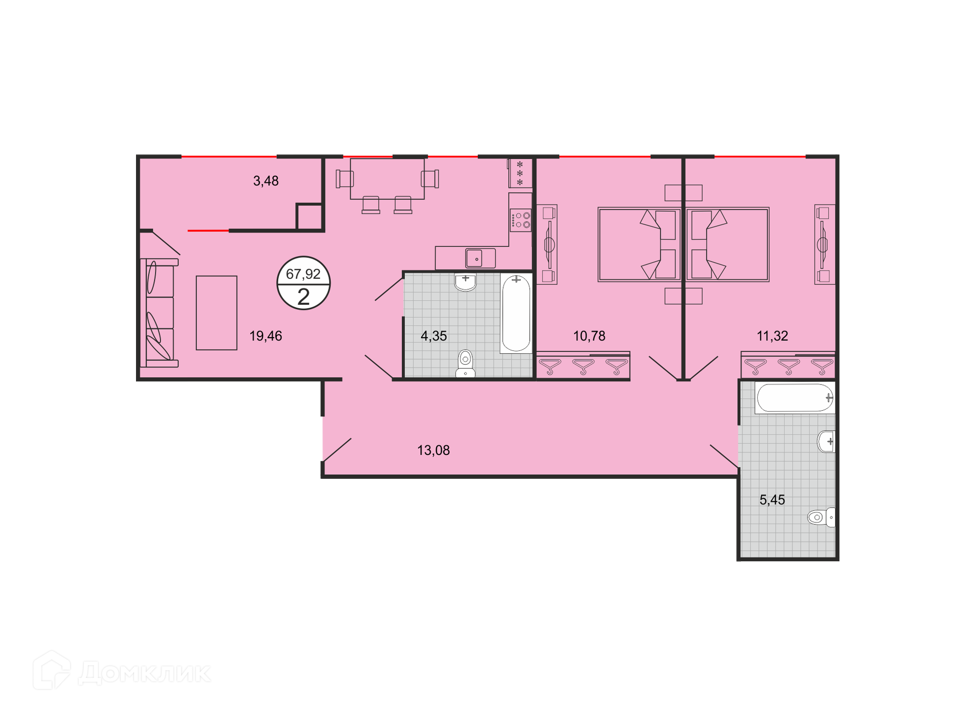 - Общая площадь: 67.92 м²