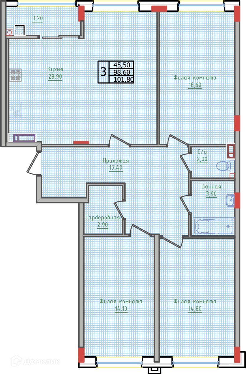 Площади квартир