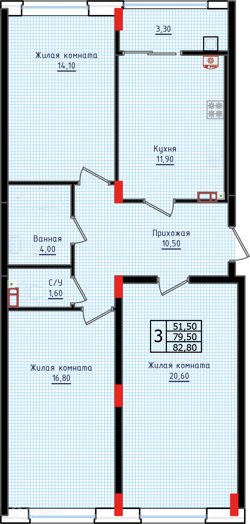 Площади квартир