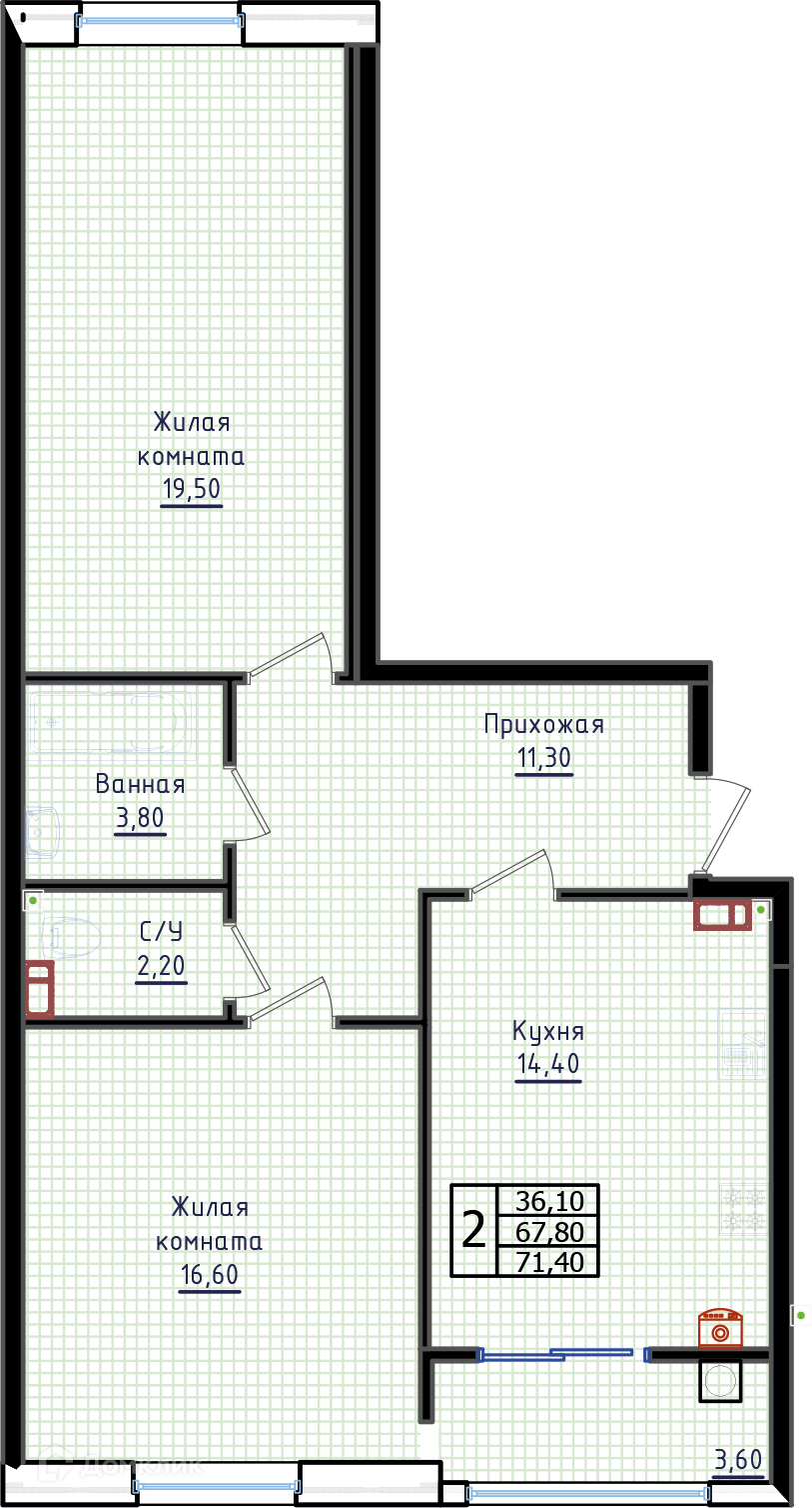 Предлагается 2-комнатная квартира в новом жилом комплексе "ЖК "Суворов"" 🏢. Квартира расположена на 1-м этаже 11-этажного дома. Отличный вариант для комфортной жизни.