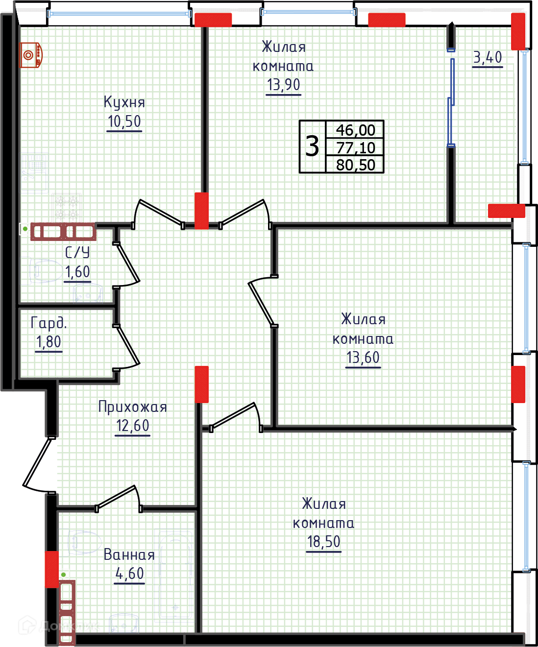 Доступна к покупке 3-комнатная квартира в новом жилом комплексе "ЖК "Суворов"" 🏢. Квартира расположена на 1-м этаже 11-этажного дома. Прекрасный выбор для семьи.