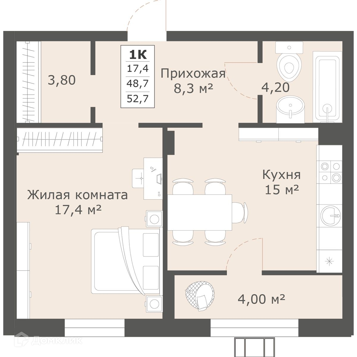 - ✅ Просторная жилая площадь: 17.4 м².