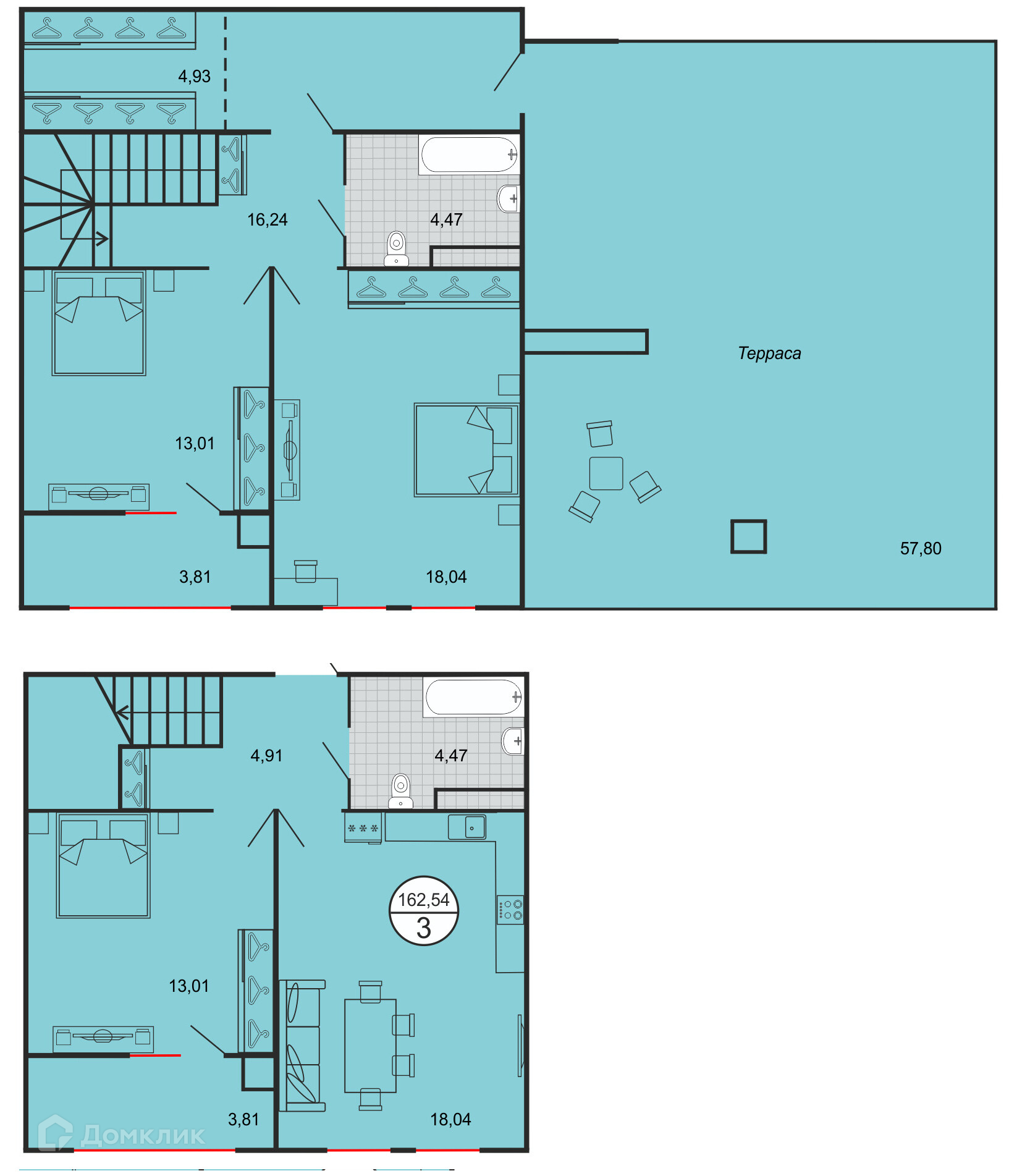 - Общая площадь: 162.54 м²