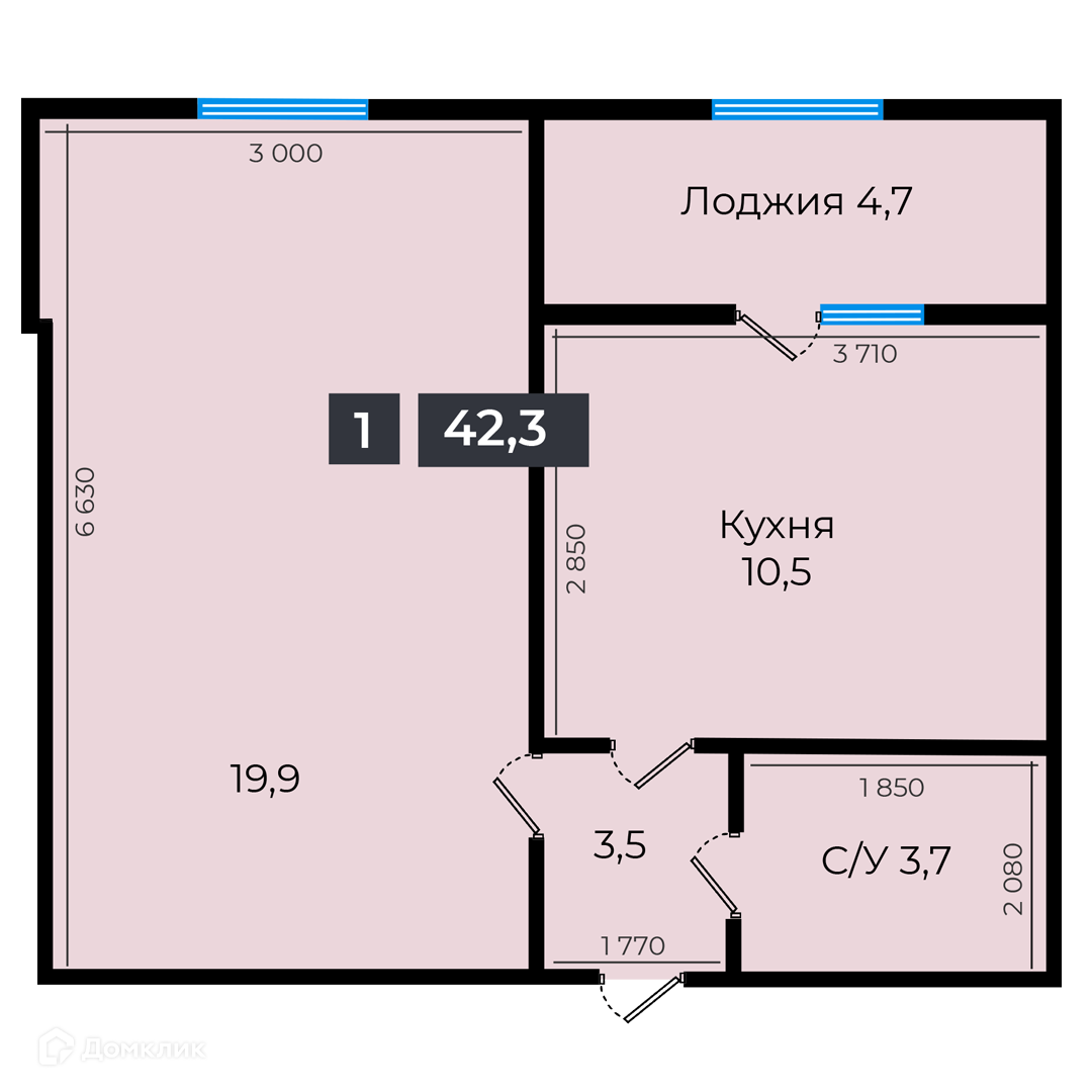 - ✅ Общая площадь: 42.6 м².