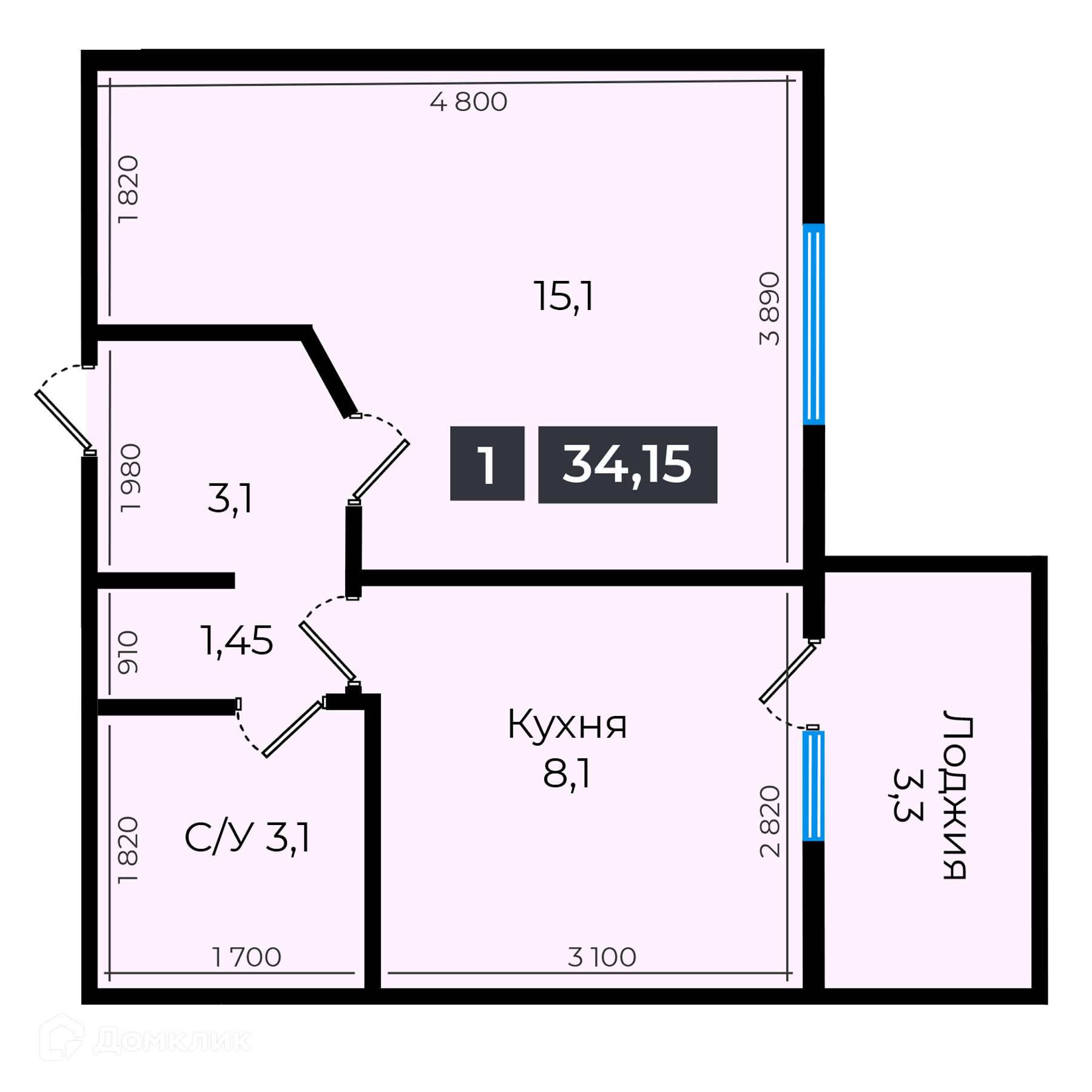 - ✅ Кухня: 0 м² — эргономичное пространство.