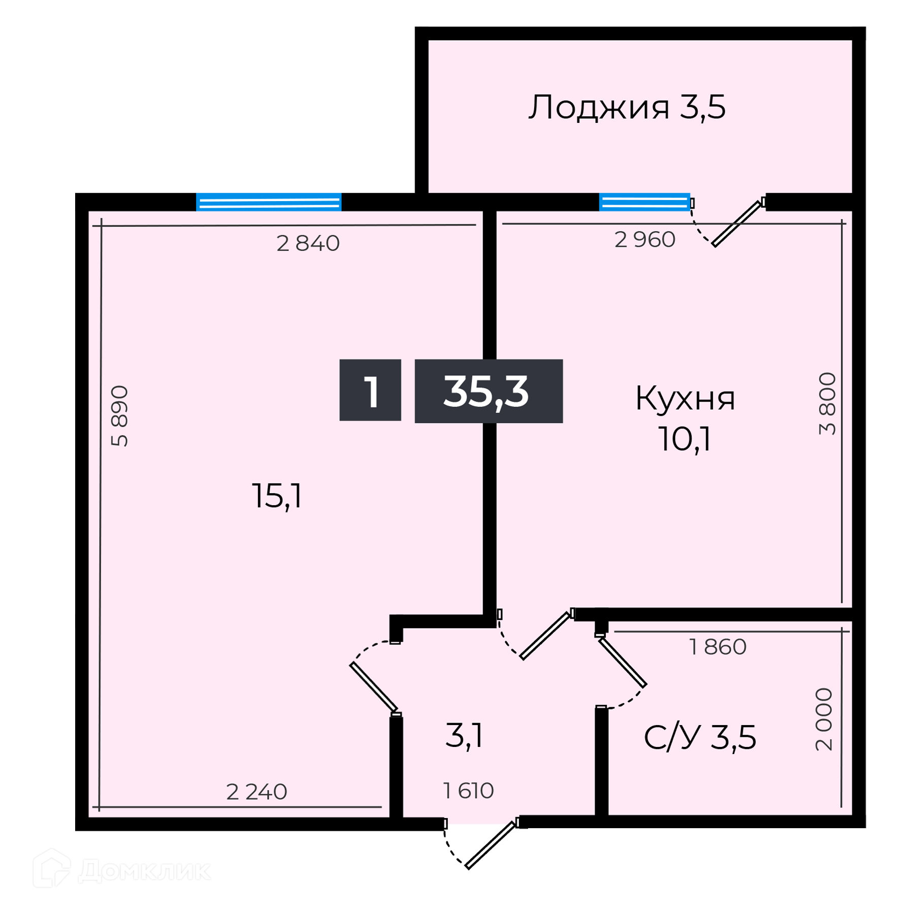 - Количество комнат: 1-комнатная квартира