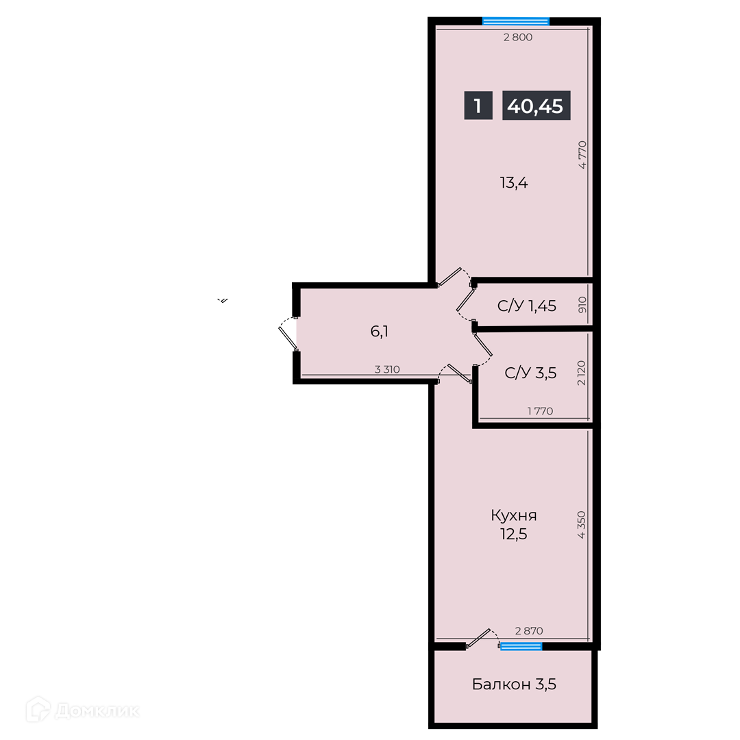 - Количество комнат: 1-комнатная квартира