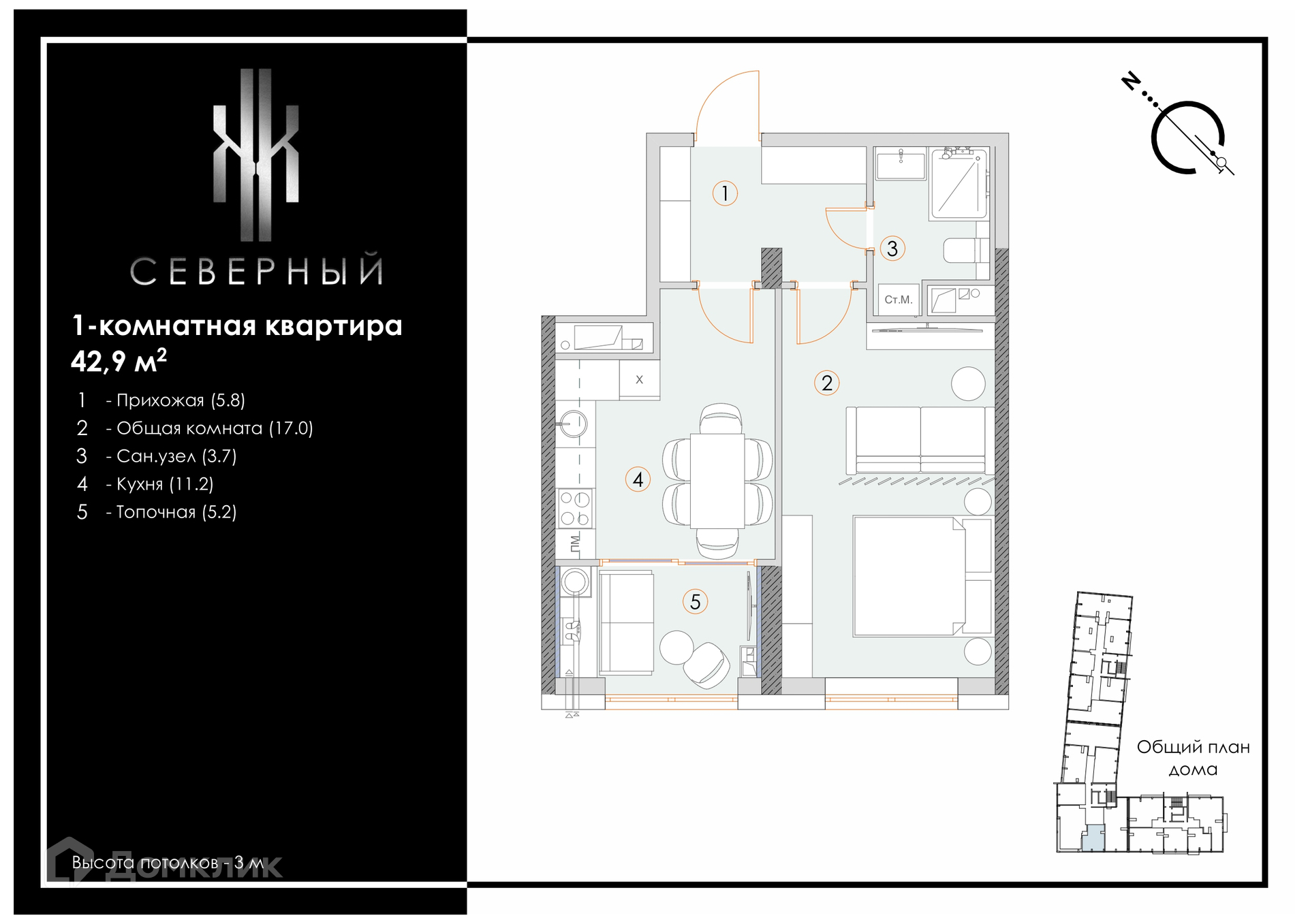 - ✅ Кухня: - м² — идеальна для семейных ужинов.