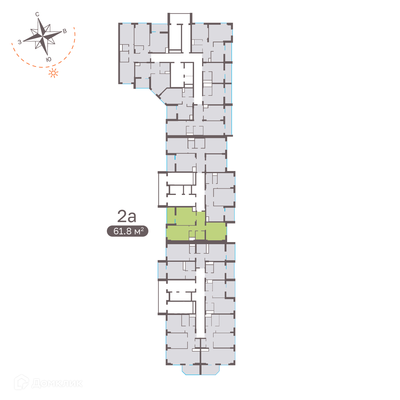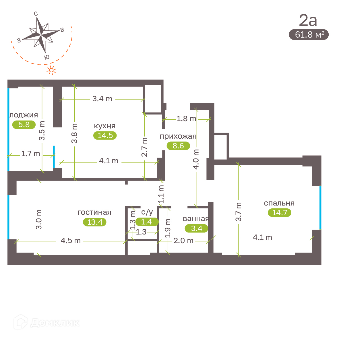 - Общая площадь: 61.3 м²
