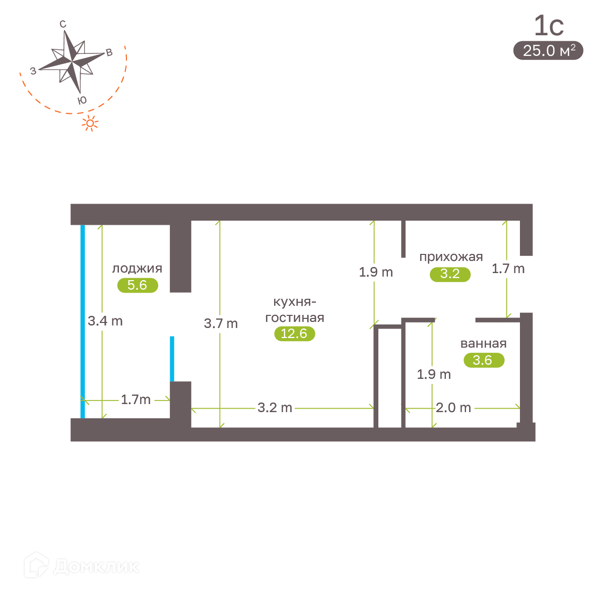 - ✅ Общая площадь: 25 м².