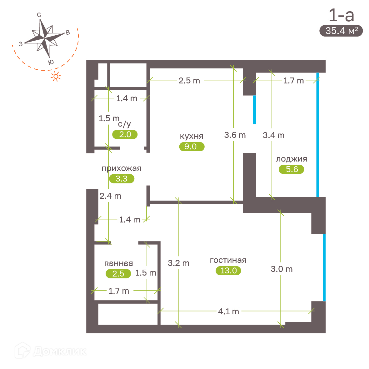 - ✅ Общая площадь: 35.4 м².