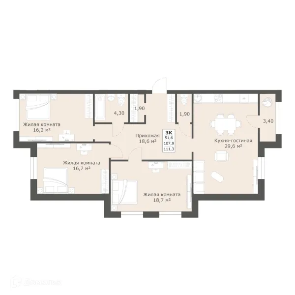 3 комн. квартира в Ставрополе в ипотеку от 114 676 руб/месяц