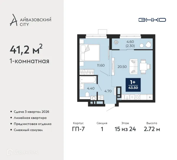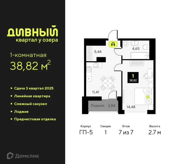 1 комн. квартира в Тюмени в ипотеку от 39 281 руб/месяц