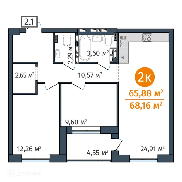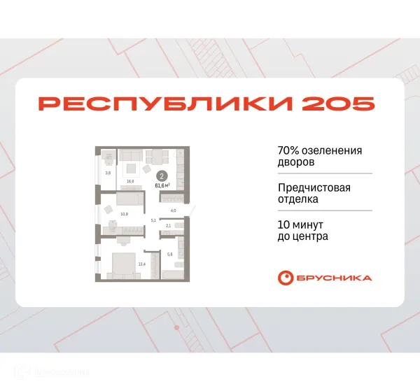 2 комн. квартира в Тюмени в ипотеку от 57 545 руб/месяц