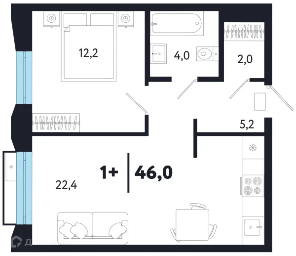 1 комн. квартира в Тюмени в ипотеку от 54 223 руб/месяц
