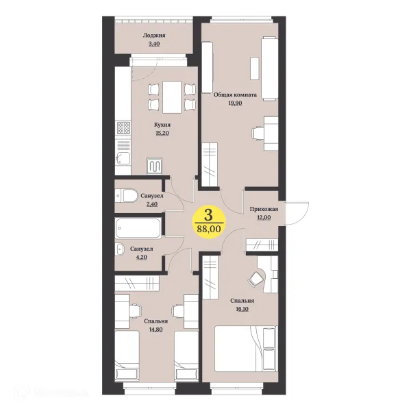 3 комн. квартира в Ставрополе в ипотеку от 71 444 руб/месяц