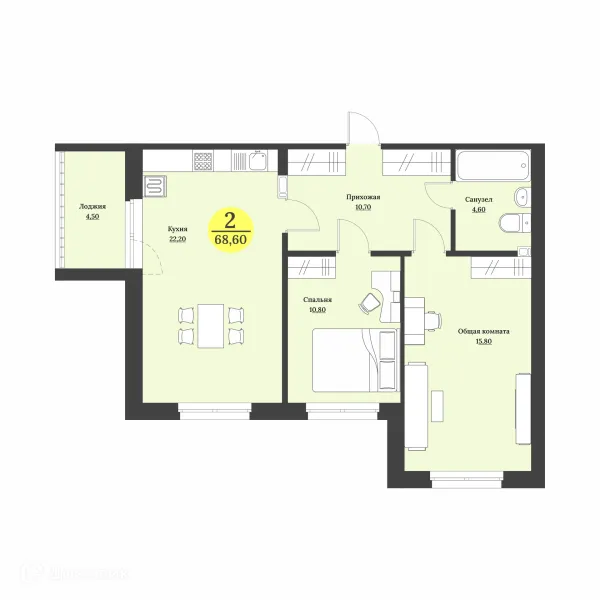2 комн. квартира в Ставрополе в ипотеку от 44 005 руб/месяц