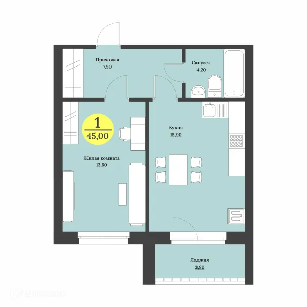 1 комн. квартира в Ставрополе в ипотеку от 33 419 руб/месяц