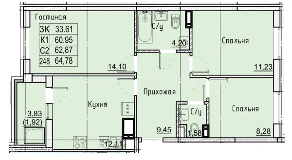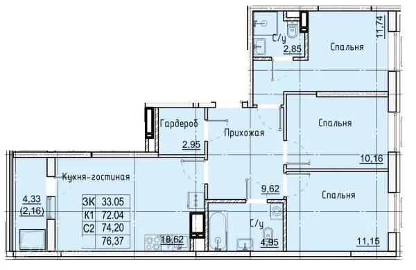 3 комн. квартира в Ставрополе в ипотеку от 48 624 руб/месяц