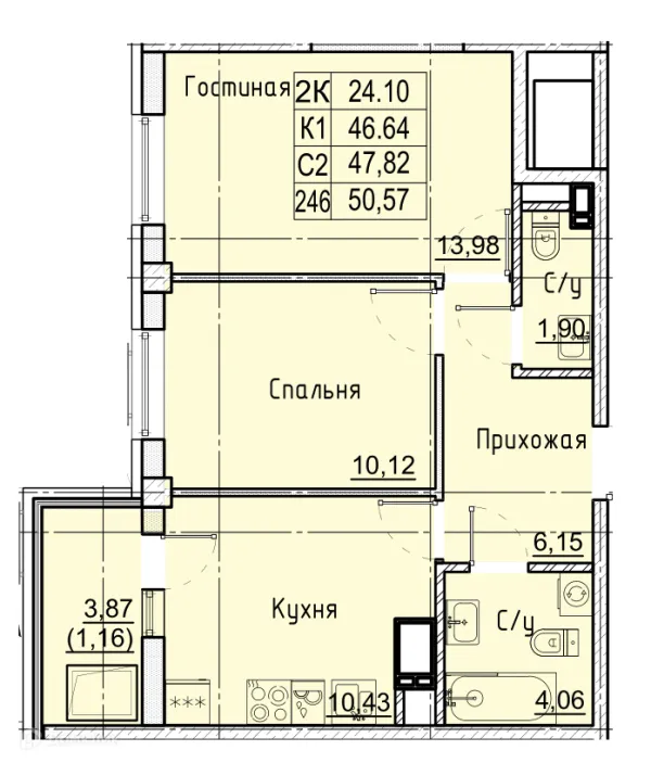 1 комн. квартира в Ставрополе в ипотеку от 24 238 руб/месяц