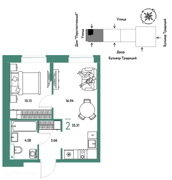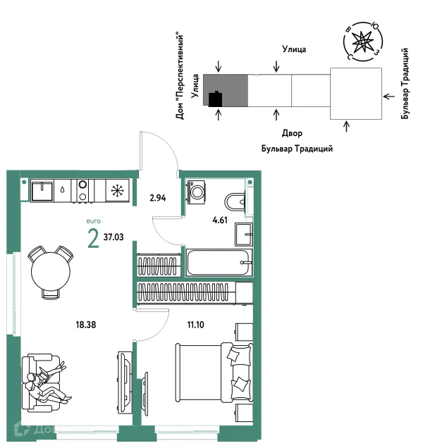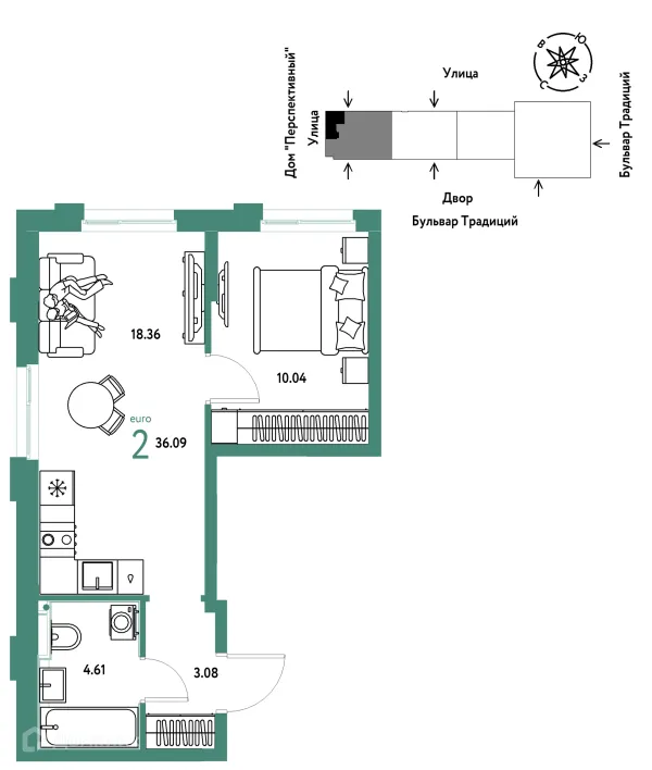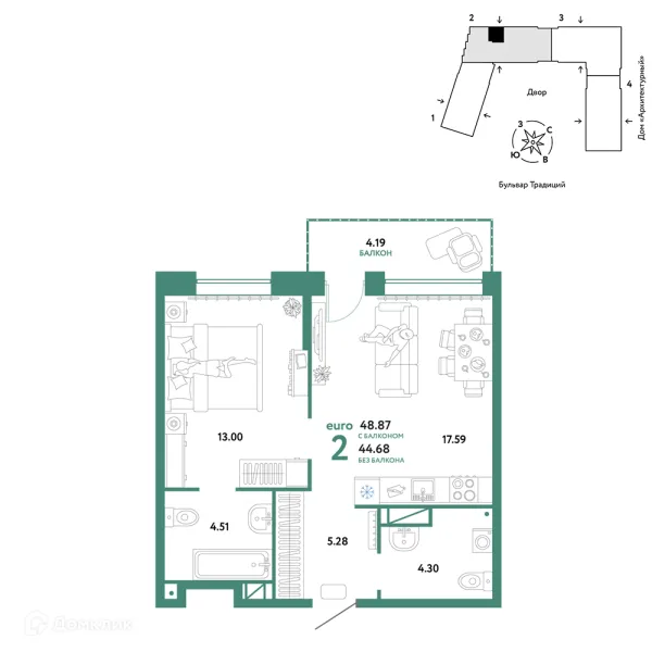 2 комн. квартира в Тюмени в ипотеку от 43 675 руб/месяц
