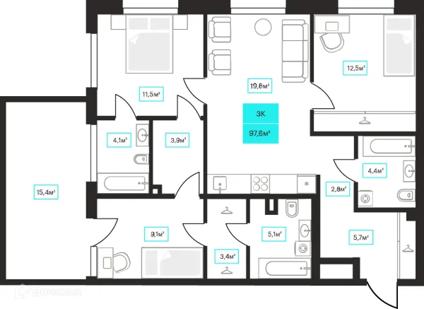 3 комн. квартира в Тюмени в ипотеку от 80 579 руб/месяц