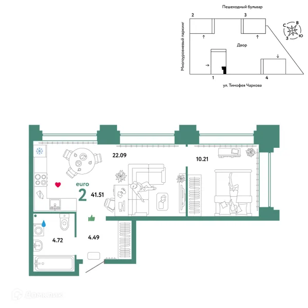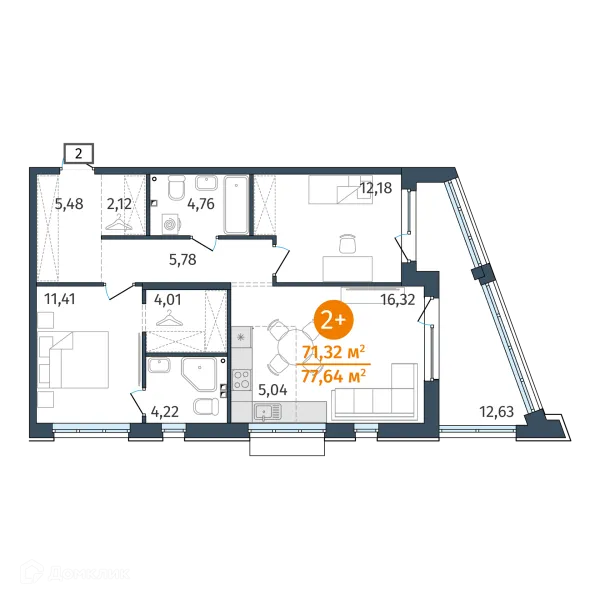 2 комн. квартира в Тюмени в ипотеку от 49 624 руб/месяц