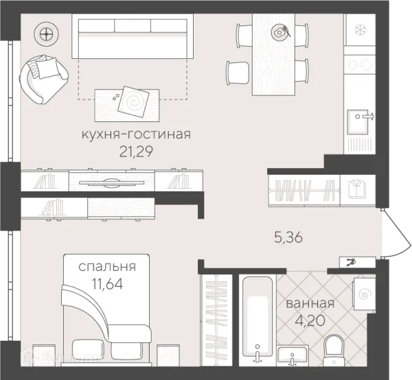 1 комн. квартира в Тюмени в ипотеку от 29 164 руб/месяц
