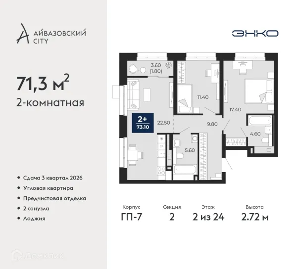 2 комн. квартира в Тюмени в ипотеку от 79 787 руб/месяц