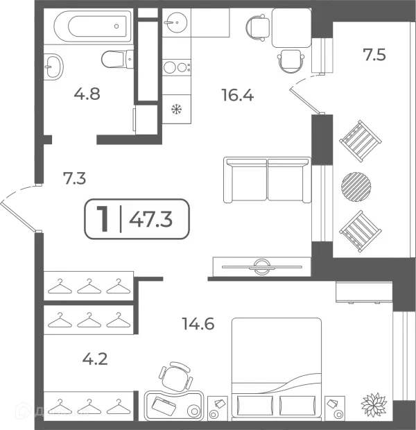 1 комн. квартира в Тюмени в ипотеку от 46 086 руб/месяц