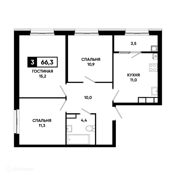 3 комн. квартира в Ставрополе в ипотеку от 46 456 руб/месяц