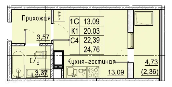 1 комн. квартира в Ставрополе в ипотеку от 29 905 руб/месяц