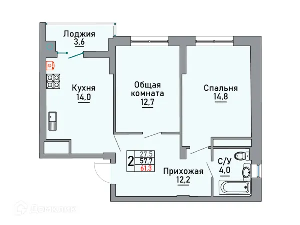 2 комн. квартира в Ставрополе в ипотеку от 46 694 руб/месяц