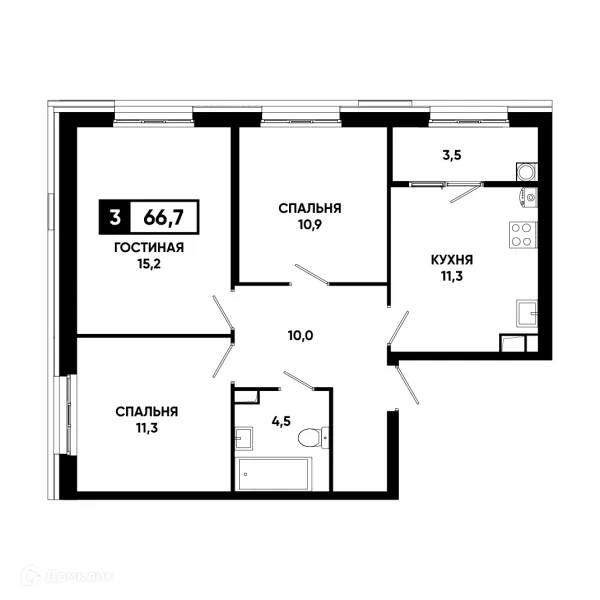 3 комн. квартира в Ставрополе в ипотеку от 46 877 руб/месяц