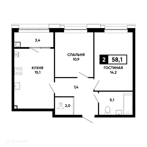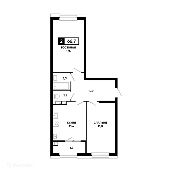 2 комн. квартира в Ставрополе в ипотеку от 43 269 руб/месяц
