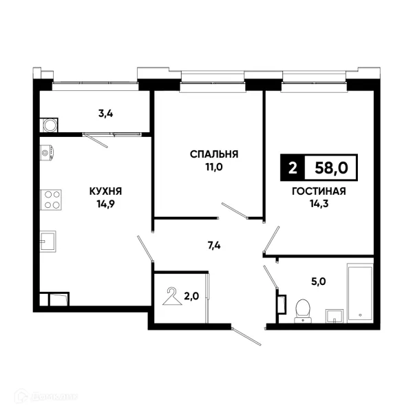 2 комн. квартира в Ставрополе в ипотеку от 43 344 руб/месяц