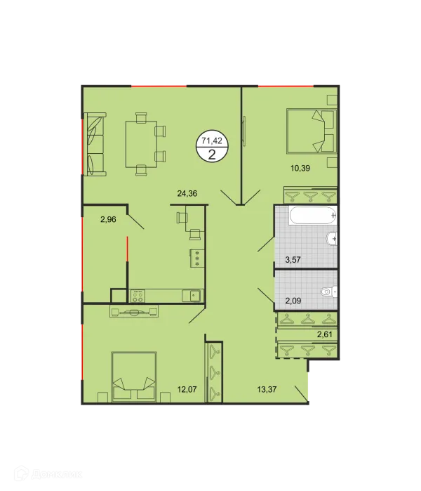 2 комн. квартира в Ставрополе в ипотеку от 43 648 руб/месяц