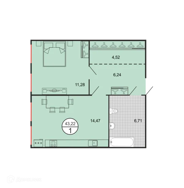 1 комн. квартира в Ставрополе в ипотеку от 30 036 руб/месяц