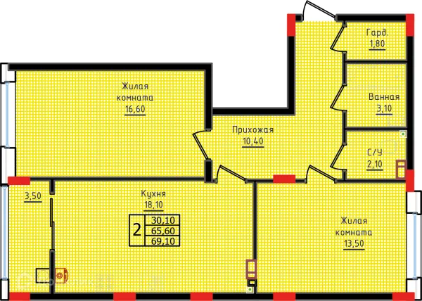 2 комн. квартира в Ставрополе в ипотеку от 65 529 руб/месяц