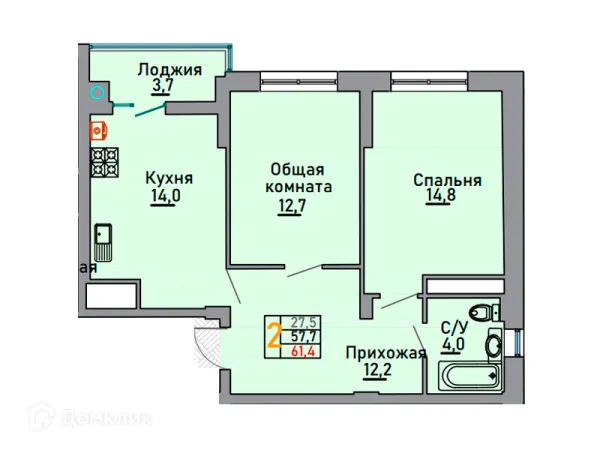 2 комн. квартира в Ставрополе в ипотеку от 68 412 руб/месяц