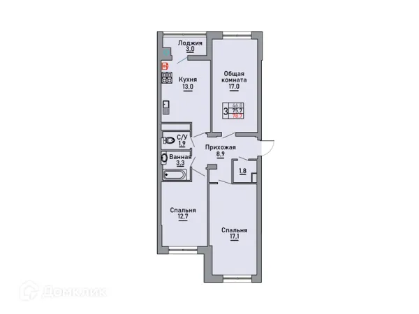 3 комн. квартира в Ставрополе в ипотеку от 57 238 руб/месяц