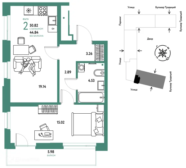 2 комн. квартира в Тюмени в ипотеку от 51 972 руб/месяц