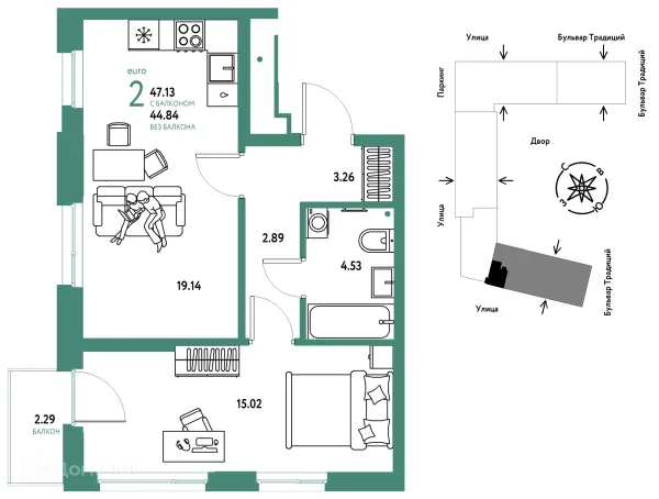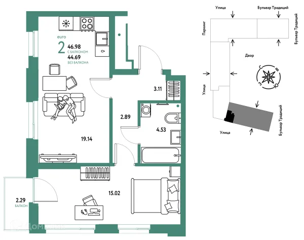 2 комн. квартира в Тюмени в ипотеку от 45 710 руб/месяц