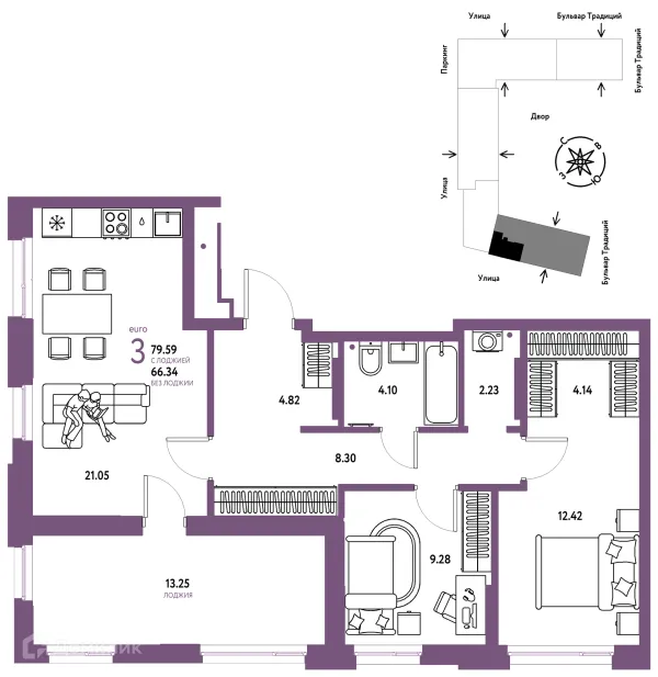 3 комн. квартира в Тюмени в ипотеку от 81 480 руб/месяц