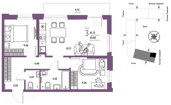 3 комн. квартира в Тюмени в ипотеку от 61 521 руб/месяц